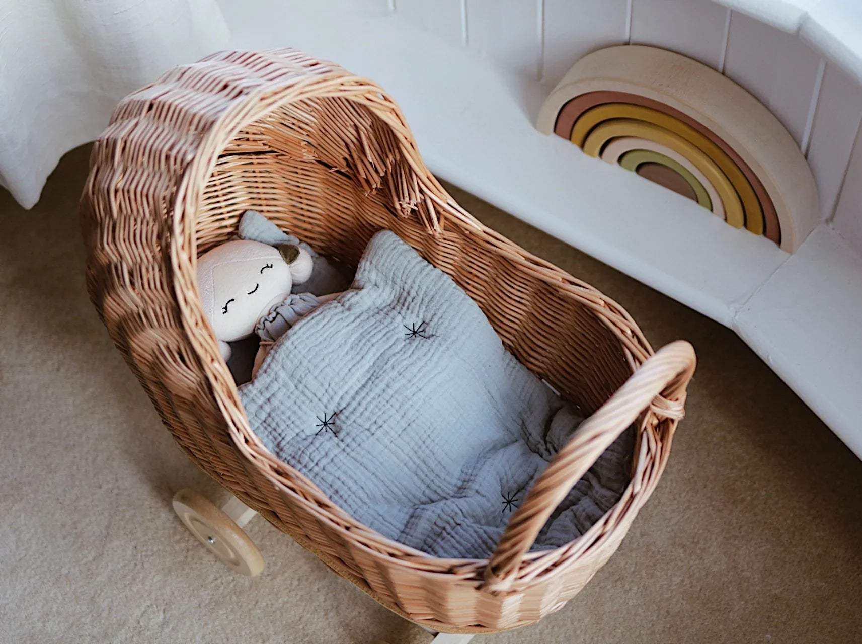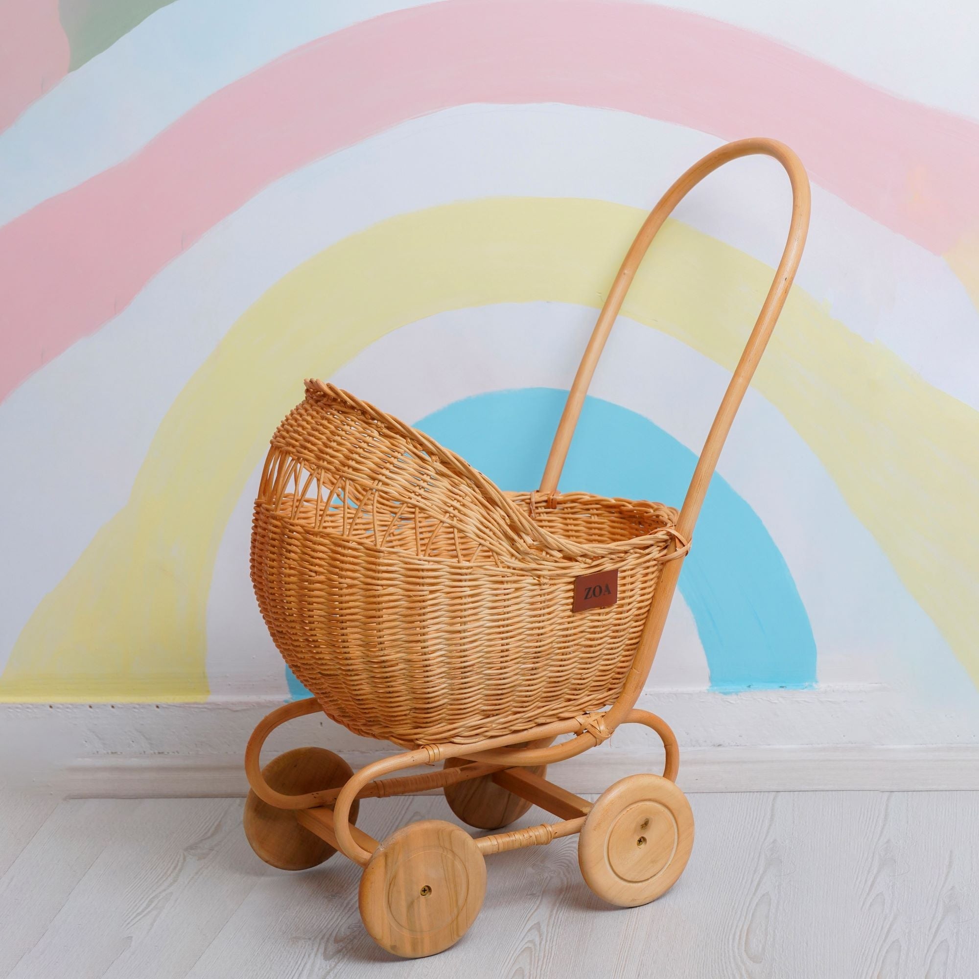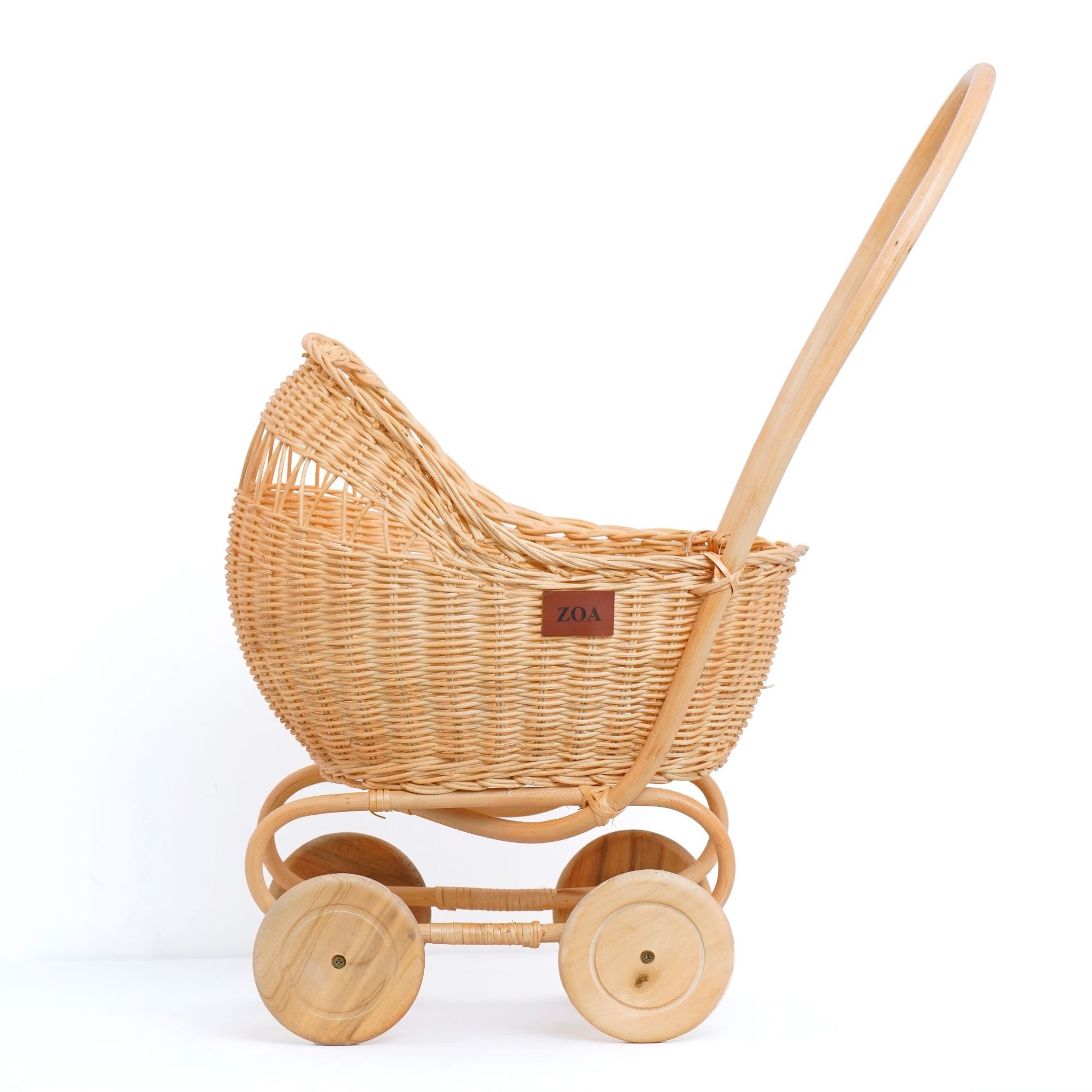 Ürün Özellikleri: Çocuklar için oyuncak bebeklerini taşımak için bebek arabası - Doğal rattandan elde dokunmuştur.